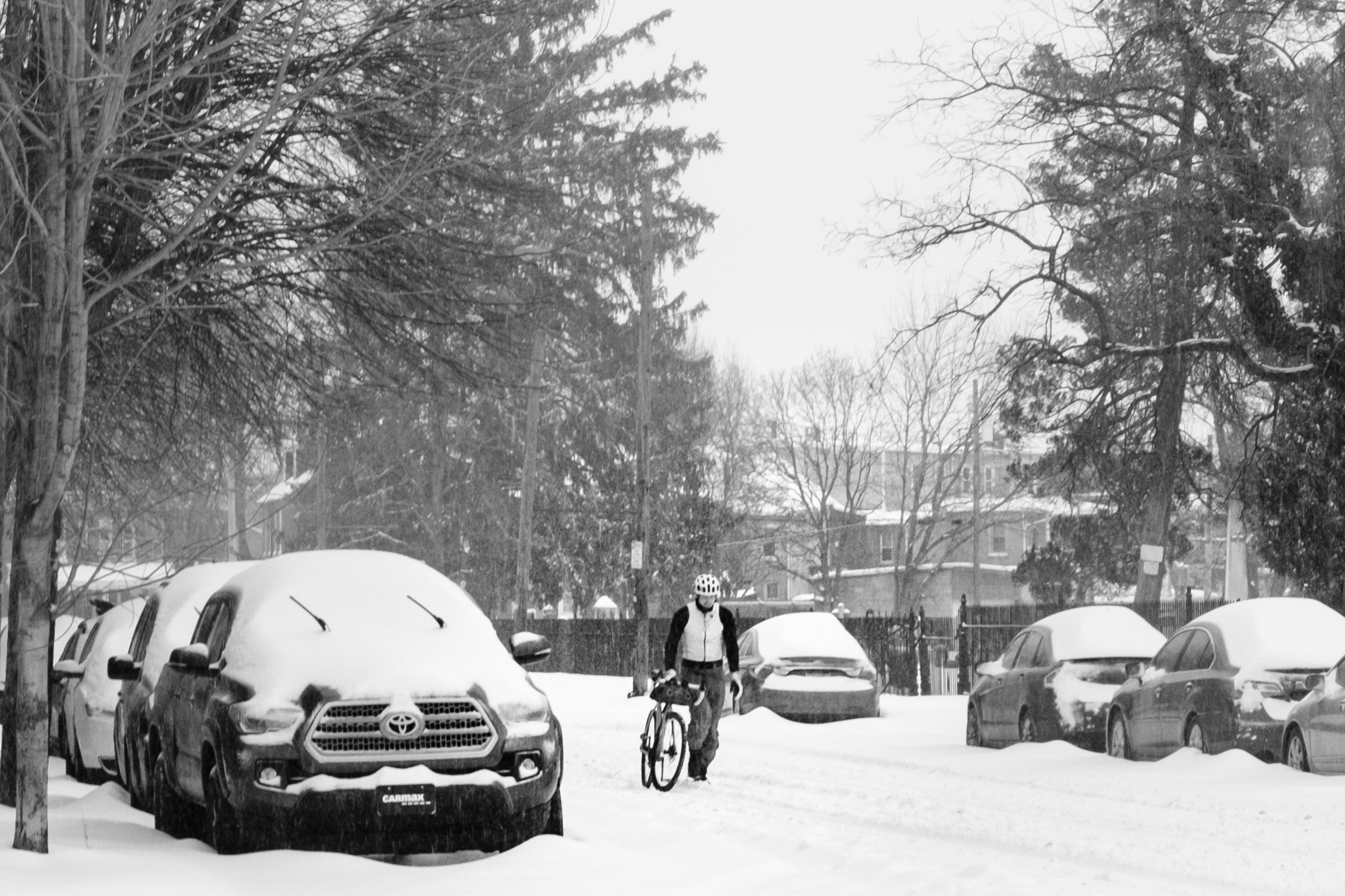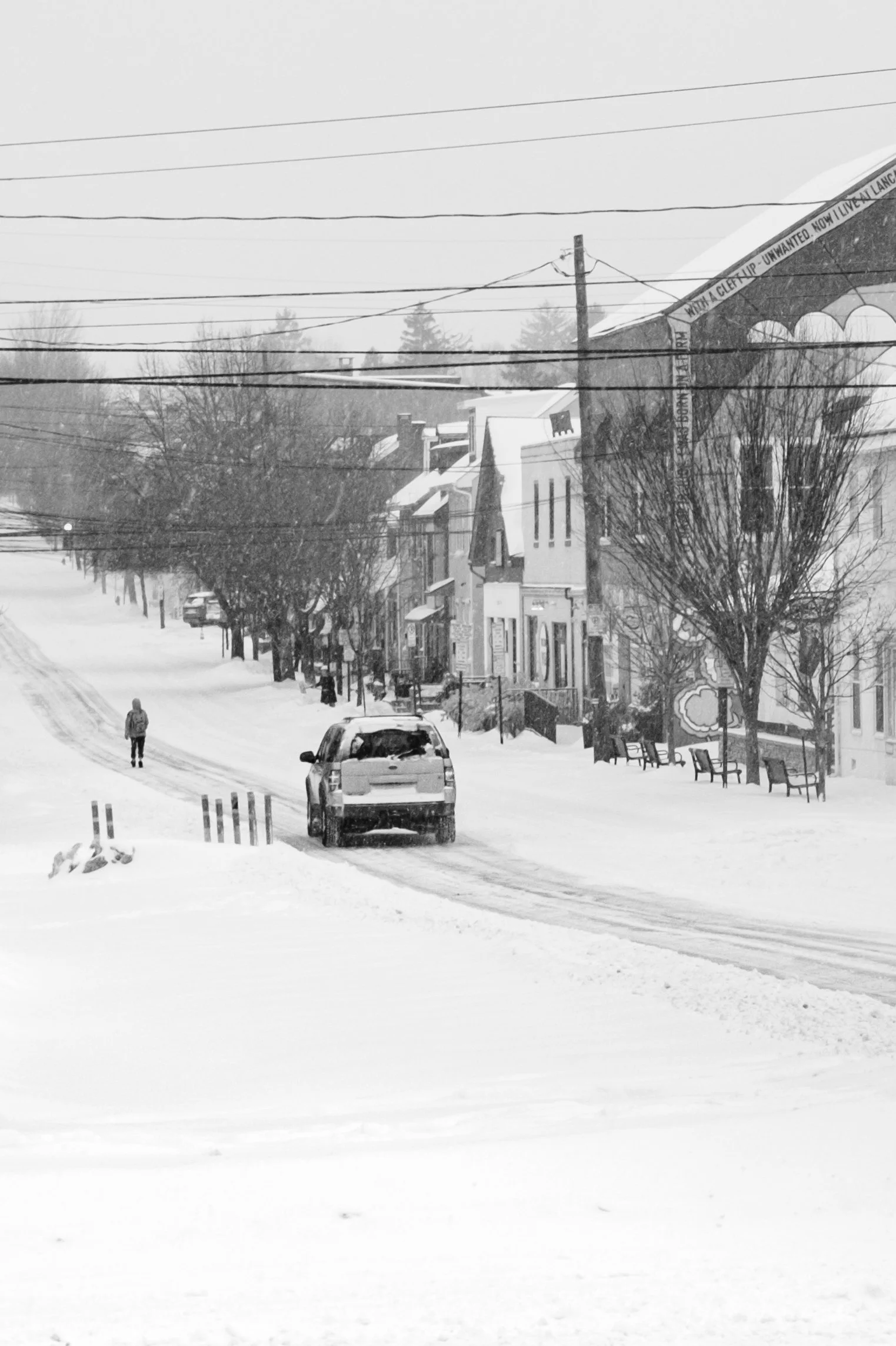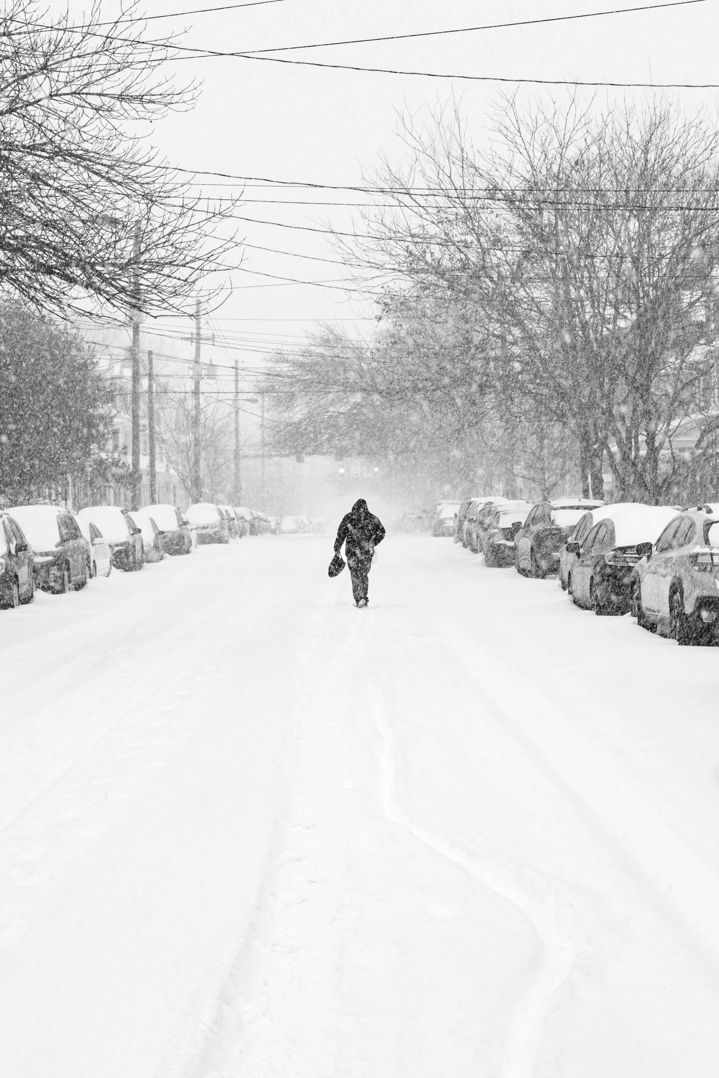 The first photo I took was right outside my home. A man was walking in the middle of the road, carrying a bag. I don’t know anything about the man or what he was carrying, but he had to be somewhere with whatever was in that bag, and a snowstorm wasn’t about to stop him. It was a great ice breaker for me and the camera.