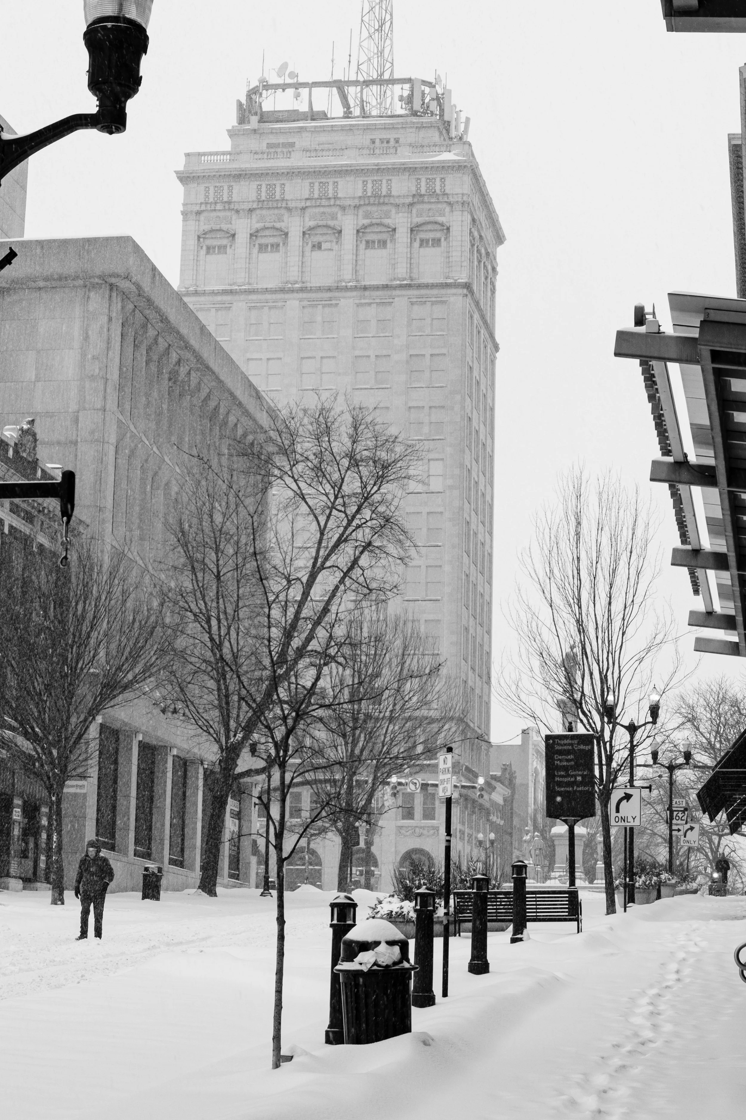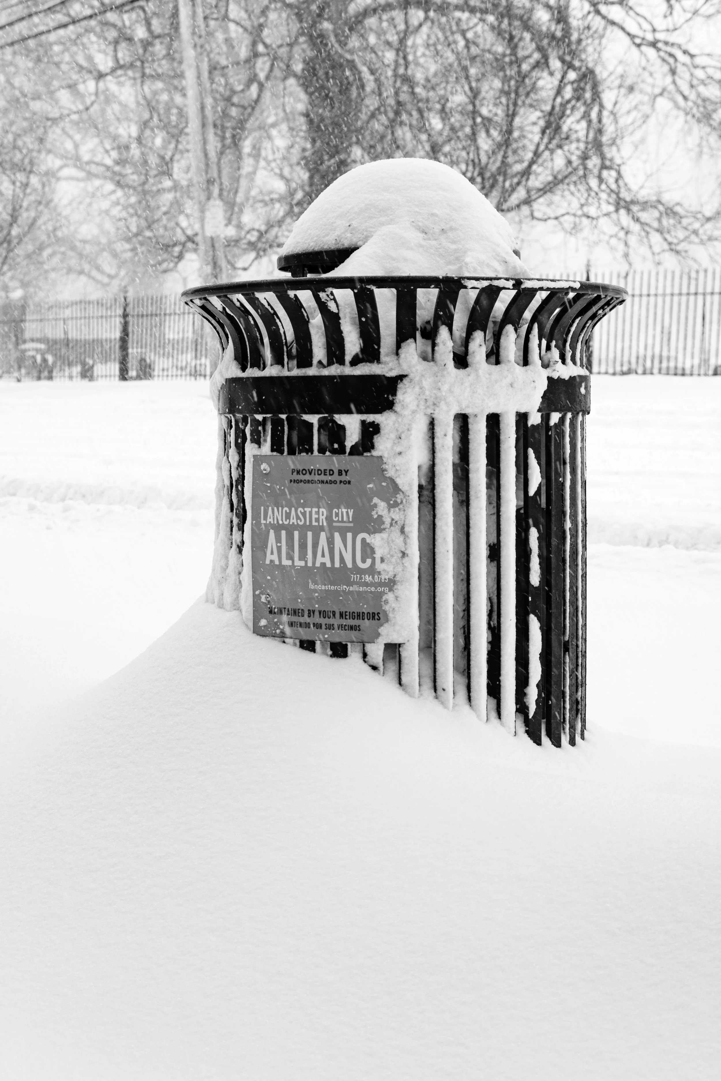I don’t find snow beautiful or relaxing. When I see snow, I see extra work; shoveling, salting, scraping, parking wars – I see icy and un-shoveled sidewalks. The ill-preparedness and laziness of others become a problem for those around them. So, I am not capable of taking photos that capture the “beauty” of snow. But – I do have to admit, in the first hours during a snow fall, before the work and negative feelings began, I do find it interesting to look at. I do think it offers an appealing backdrop to a city, especially an old city like Lancaster. So, when the snow started a few weeks ago, I grabbed my camera and hit the streets.